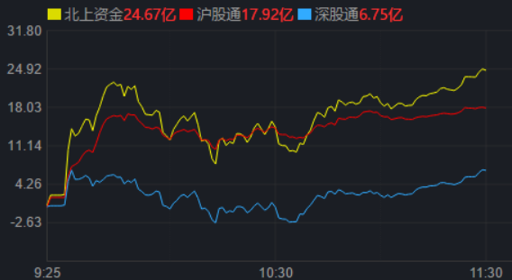 從資金面來看,3月13日上午,北上資金凈買入金額達24.67億元,其中,滬股通凈買入17.92億元,深股通凈買入6.75億元。