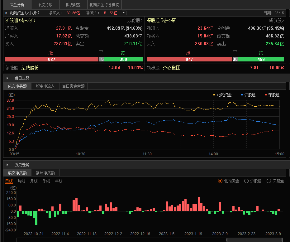 早盤三大指數(shù)高開震蕩 北上資金涌入超36億元 機(jī)構(gòu)稱中國特色估值...2023-03-15 12:06