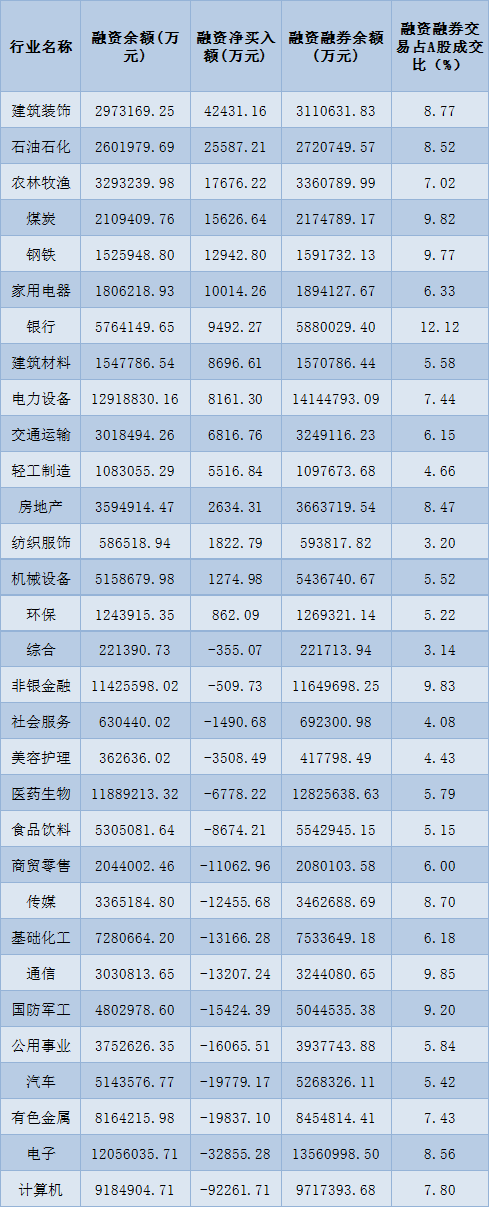 表:3月16日申萬一級行業(yè)兩融交易情況: