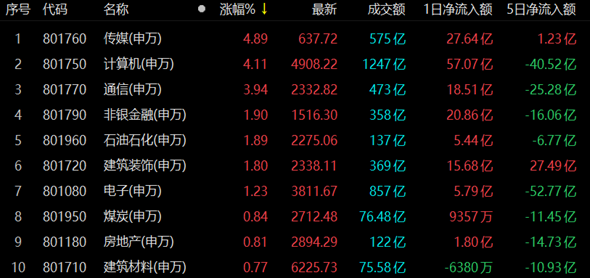 傳媒行業(yè)漲4.89%