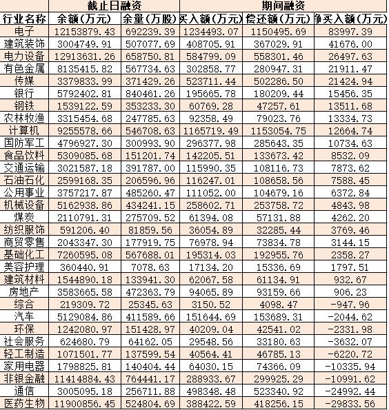 表:3月20日申萬一級行業(yè)兩融交易情況: