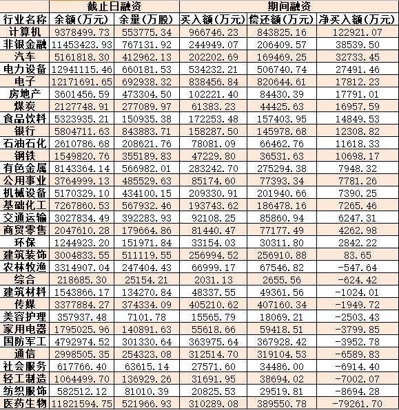 表:3月21日申萬一級行業(yè)兩融交易情況: