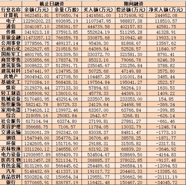 表:3月22日申萬一級行業(yè)兩融交易情況: