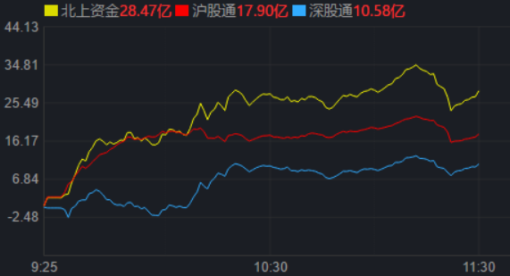 從資金面來看,3月29日上午,北上資金凈買入金額達28.47億元,其中,滬股通凈買入17.90億元,深股通凈買入10.58億元。