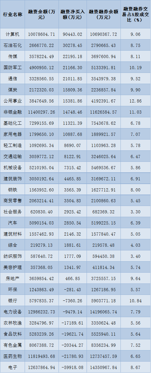 表:3月28日申萬一級行業(yè)兩融交易情況: