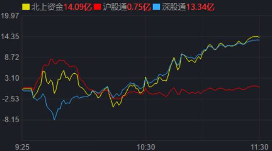 從資金面來(lái)看,3月30日上午,北上資金凈買入14.09億元,其中,滬股通凈買入0.75億元,深股通凈買入13.34億元。