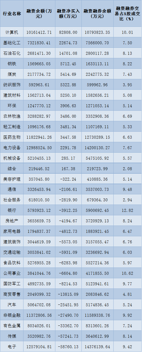 表:3月29日申萬(wàn)一級(jí)行業(yè)兩融交易情況: