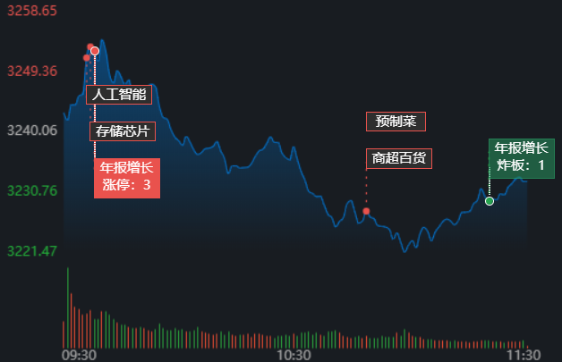 3月30日早盤,A股三大指數(shù)震蕩分化,創(chuàng)業(yè)板指表現(xiàn)稍強(qiáng)。截至上午11:30,上證指數(shù)跌0.24%,報(bào)3232.39點(diǎn);深證成指和創(chuàng)業(yè)板指漲幅分別為-0.16%和0.09%;滬深兩市成交額合計(jì)5780.1億元,較前一交易日縮減3.17%。總體來(lái)看,A股市場(chǎng)個(gè)股漲少跌多;漲跌停方面,有11只個(gè)股漲停,跌停股4只。