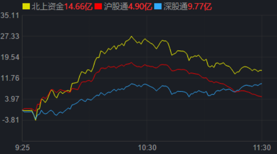 從資金面來(lái)看,3月31日上午,北上資金凈買入金額達(dá)14.66億元,其中,滬股通凈買入4.90億元,深股通凈買入9.77億元。
