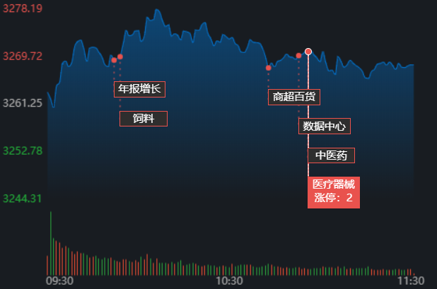 3月31日早盤(pán),A股三大指數(shù)沖高震蕩,創(chuàng)業(yè)板指表現(xiàn)較強(qiáng)。截至上午11:30,上證指數(shù)漲0.22%,報(bào)3268.31點(diǎn);深證成指和創(chuàng)業(yè)板指漲幅分別為0.27%和0.37%;滬深兩市成交額合計(jì)5486.2億元,較前一交易日縮減5.08%。總體來(lái)看,A股市場(chǎng)個(gè)股漲多跌少,漲跌停方面,有22只個(gè)股漲停,跌停股1只。