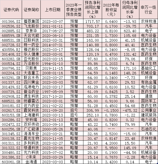 表:已披露2023年一季度業(yè)績預(yù)告且預(yù)喜的公司