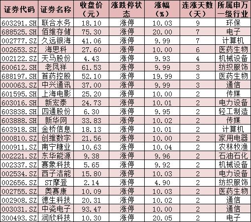 表:連續(xù)上漲3日且今日收盤(pán)漲停個(gè)股情況: