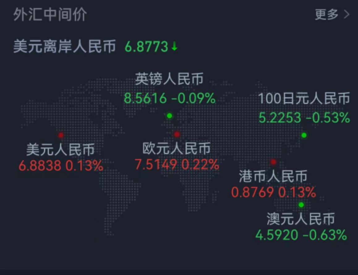 周五在岸人民幣兌美元16:30收盤(pán)報(bào)6.8754,較上一交易日漲53個(gè)基點(diǎn),周跌41個(gè)基點(diǎn)。人民幣兌美元中間價(jià)報(bào)6.8838,調(diào)貶91個(gè)基點(diǎn),本周累計(jì)調(diào)貶121個(gè)基點(diǎn)。在岸人民幣兌美元夜盤(pán)收?qǐng)?bào)6.8650。交易員表示,多數(shù)歐美市場(chǎng)當(dāng)日因假期休市,外匯市場(chǎng)交投清淡,人民幣總體窄幅波動(dòng)。