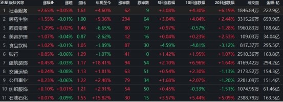 社會(huì)服務(wù)行業(yè)漲幅居首