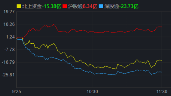 從資金面來(lái)看,4月24日上午,北上資金凈流出15.38億元,其中,滬股通凈買(mǎi)入8.34億元,深股通凈流出23.73億元。