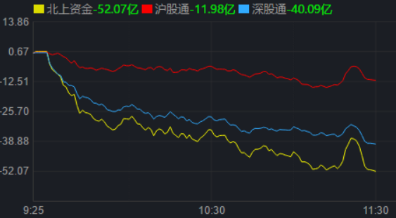 從資金面來看,4月25日上午,北上資金凈流出52.07億元,其中,滬股通凈流出11.98億元,深股通凈流出40.09億元。