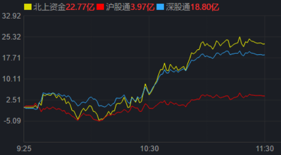 從資金面來看,4月26日上午,北上資金凈買入金額達(dá)22.77億元,其中,滬股通凈買入3.97億元,深股通凈買入18.80億元。