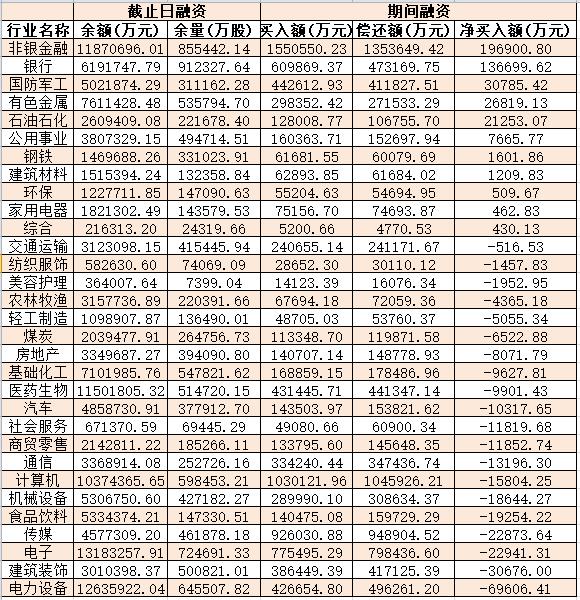 表:5月9日申萬一級(jí)行業(yè)兩融交易情況:
