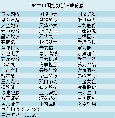 新納入MSCI中國指數(shù)的53只成份股中,包含51只A股與2只港股(中遠(yuǎn)海能、京東物流),總市值排在前三位的分別為京滬高鐵、晶科能源、大全能源。