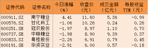 表:今日糖業(yè)板塊個(gè)股漲幅一覽