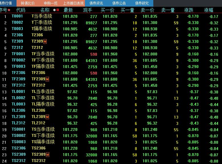 周五,國債期貨全線大幅收跌,30年期主力合約跌0.48%,10年期主力合約跌0.32%,5年期主力合約跌0.29%,2年期主力合約跌0.07%。銀行間主要利率債收益率多數(shù)上行。