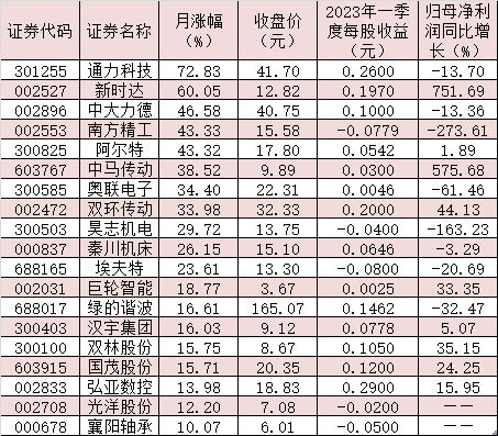 今年一季度,減速器板塊上市公司業(yè)績改善明顯。同花順數(shù)據(jù)顯示,在45家減速器板塊上市公司中,19家公司今年一季度歸母凈利潤實現(xiàn)同比增長,占比逾四成。