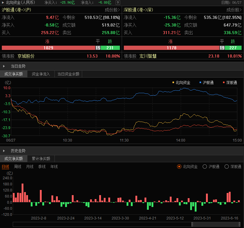 6月27日,A股三大指數(shù)震蕩上漲。行業(yè)板塊和個(gè)股漲多跌少,北向資金凈賣出近26億元。有機(jī)構(gòu)分析人士表示,拉長(zhǎng)周期來(lái)看,A股后期走勢(shì)樂觀,下半年行情大概率會(huì)好于上半年。