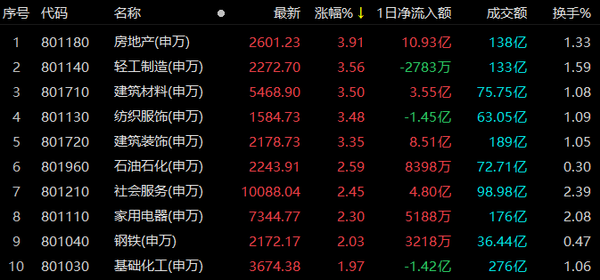 6月27日,行業(yè)漲多跌少,從31個(gè)申萬(wàn)一級(jí)行業(yè)看,全線上漲,房地產(chǎn)行業(yè)漲幅居首,達(dá)3.91%,大單資金凈流入10.93億元,此外,包括輕工制造和建筑材料等在內(nèi)的4個(gè)行業(yè)漲幅均超3%。
