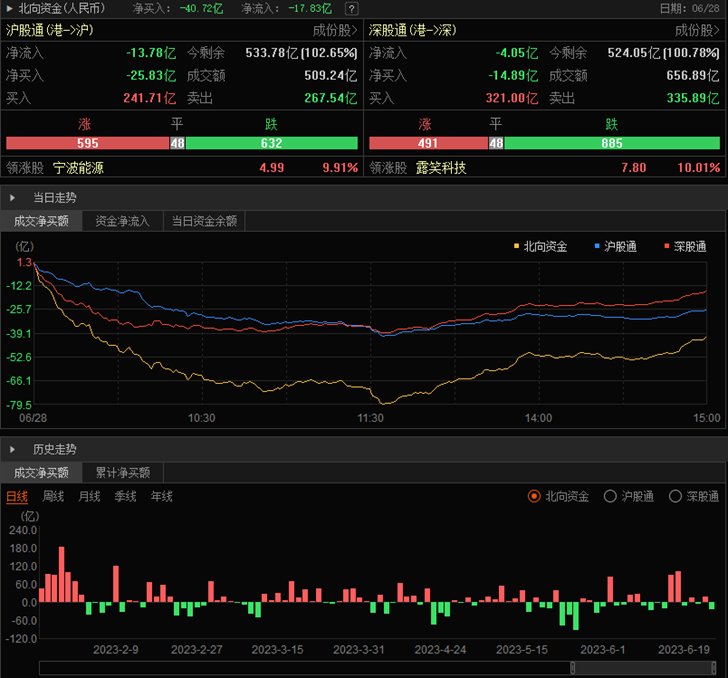 6月28日,滬指早盤出現(xiàn)快速下跌,最低至3157.12點(diǎn),隨后企穩(wěn)回升,午盤后一度翻紅。最終,上證指數(shù)平盤報(bào)收3189.38點(diǎn);深證成指跌0.47%報(bào)10926.32點(diǎn),創(chuàng)業(yè)板指跌0.44%報(bào)2182.10點(diǎn)。A股合計(jì)成交額8897.09億元,較前一交易日增長(zhǎng)5.63%;北向資金全天凈賣出40.72億元;其中滬股通凈流出25.83億元,深股通凈流出14.89億元。
