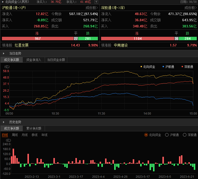 6月30日,A股三大指數(shù)震蕩上揚(yáng),滬指表現(xiàn)最弱,早盤也站上3200點(diǎn)關(guān)口,深證主板和創(chuàng)業(yè)板指均收復(fù)重要整數(shù)關(guān)口。截至收盤,上證指數(shù)漲0.62%報(bào)3202.06點(diǎn);深證成指漲1.02%報(bào)11026.59點(diǎn),創(chuàng)業(yè)板指漲1.60%報(bào)2215.00點(diǎn)。A股合計(jì)成交額9204.13億元,較前一交易日增長6.13%;北向資金全天凈買入36.75億元;其中滬股通凈流出0.09億元,深股通凈買入36.84億元。今日A股有3939只個(gè)股上漲,1113只下跌。