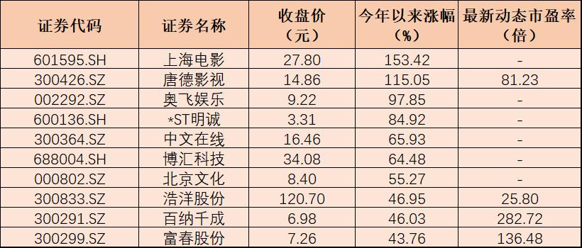 對(duì)此,接受《證券日?qǐng)?bào)》記者采訪的排排網(wǎng)財(cái)富研究員卜益力表示,估值處于低位的影視概念板塊,在業(yè)績復(fù)蘇預(yù)期的驅(qū)動(dòng)下,今年走出了一輪估值和業(yè)績雙重驅(qū)動(dòng)的反彈行情。