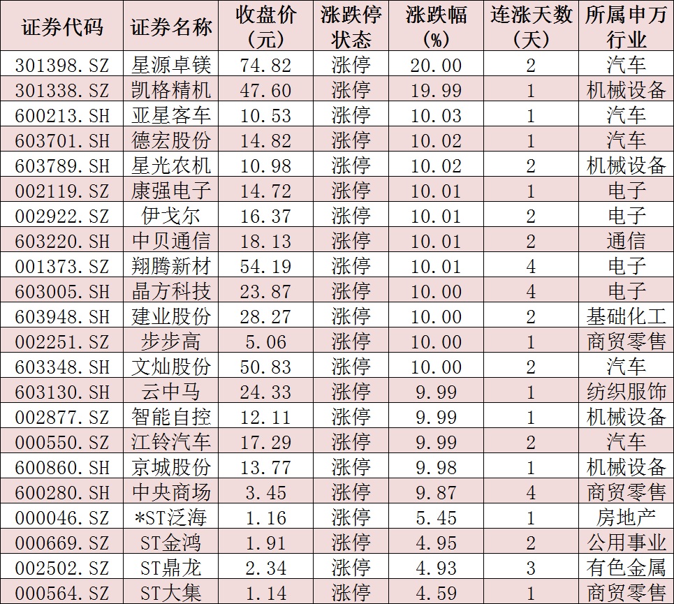 表:今日收盤(pán)漲停個(gè)股情況: