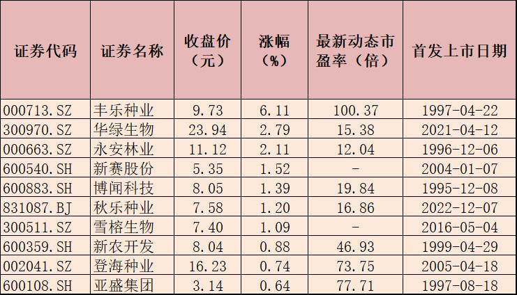 表:7月18日種植業(yè)與林業(yè)板塊內(nèi)漲幅居前十的個股一覽