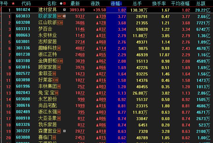 具體看,截至7月19日上午收盤,建材家具板塊漲幅居首,達(dá)1.02%。