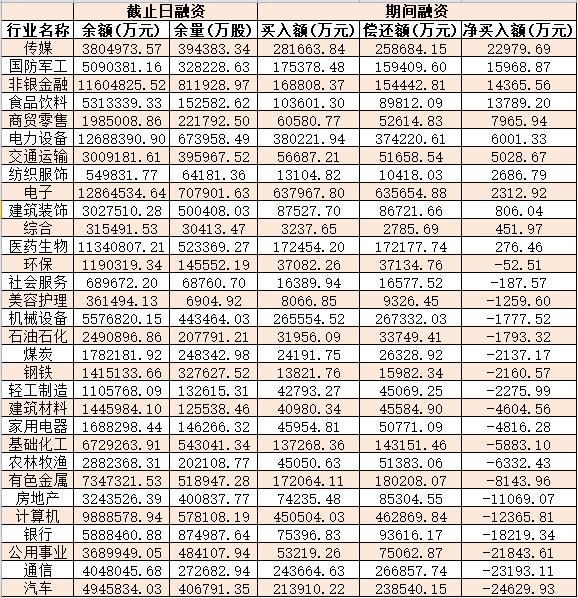 表:7月19日申萬一級行業(yè)兩融交易情況