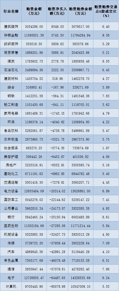 表:7月21日申萬一級(jí)行業(yè)兩融交易情況
