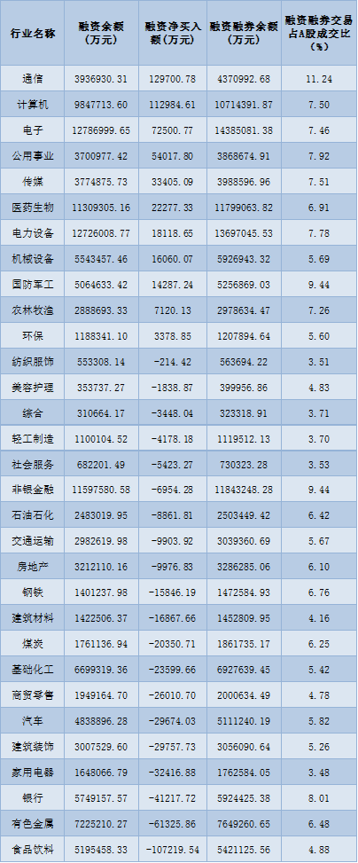表:7月25日申萬一級行業(yè)兩融交易情況