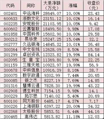 表:8月22日受到5000萬(wàn)元以上大單資金追捧的數(shù)據(jù)要素概念股