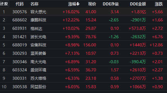 行業(yè)方面,截至8月31日上午收盤,電子化學品、貴金屬、中藥、半導體及元件、光學光電子、小家電等行業(yè)上漲。房地產(chǎn)、教育、養(yǎng)殖業(yè)、傳媒等跌幅居前。其中房地產(chǎn)開發(fā)行業(yè)普跌,城建發(fā)展、天健集團、首開股份等10只個股跌超7%。熱點方面,光刻膠概念開盤后快速拉升,漲2.70%。板塊內(nèi)容大感光、康鵬科技漲超10%;格林達漲停;另有波長光電、安集科技、藍英裝備等漲超7%。