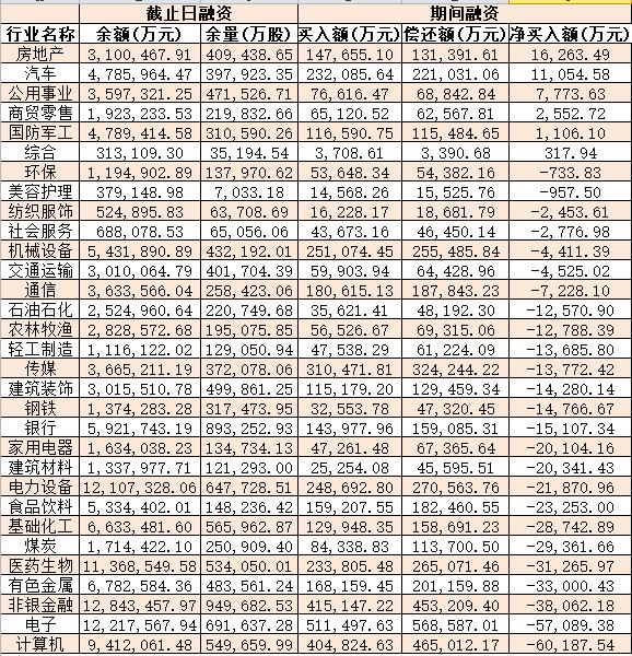 表:9月1日申萬一級(jí)行業(yè)兩融交易情況: