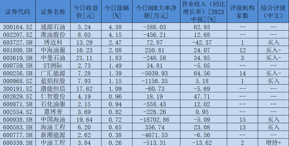 表:9月6日,油氣開(kāi)采及服務(wù)板塊實(shí)現(xiàn)上漲個(gè)股一覽