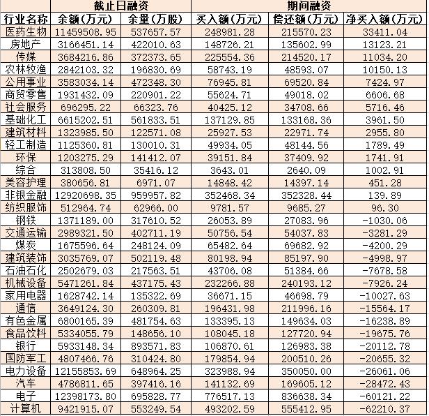 表:9月7日申萬一級行業(yè)兩融交易情況: