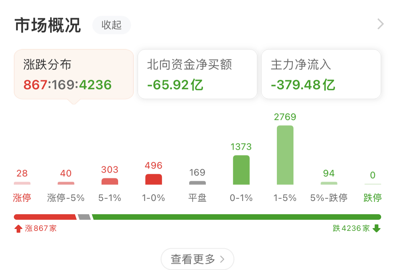 周三(9月13日),截至收盤,A股三大指數(shù)集體收跌,創(chuàng)業(yè)板指盤中創(chuàng)年內(nèi)新低,最低到2015.39點,具體來看,上證指數(shù)跌0.45%,報3123.07點,深證成指跌1.14%,報10255.87點,創(chuàng)業(yè)板指跌1.14%,報2027.73點;滬深兩市合計成交額6981.89億元;北向資金凈賣出65.92億元;總體來看,A股個股跌多漲少,上漲個股為867只,下跌個股4236只。