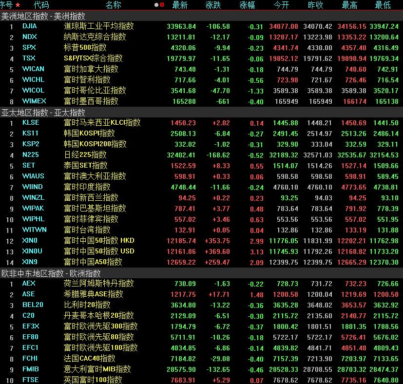 周五,美國三大股指全線收跌,道指跌0.31%報(bào)33963.84點(diǎn),標(biāo)普500指數(shù)跌0.23%報(bào)4320.06點(diǎn),納指跌0.09%報(bào)13211.81點(diǎn)。本周,道指跌1.89%,標(biāo)普500指數(shù)跌2.93%,納指跌3.62%。