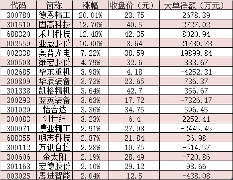 表:9月25日漲幅超2%的工業(yè)母機(jī)概念股