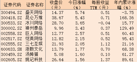 表:今日游戲板塊內(nèi)漲幅前十個(gè)股一覽