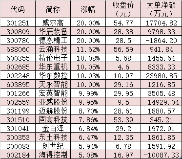 表:9月26日漲幅超5%的新型工業(yè)化概念股