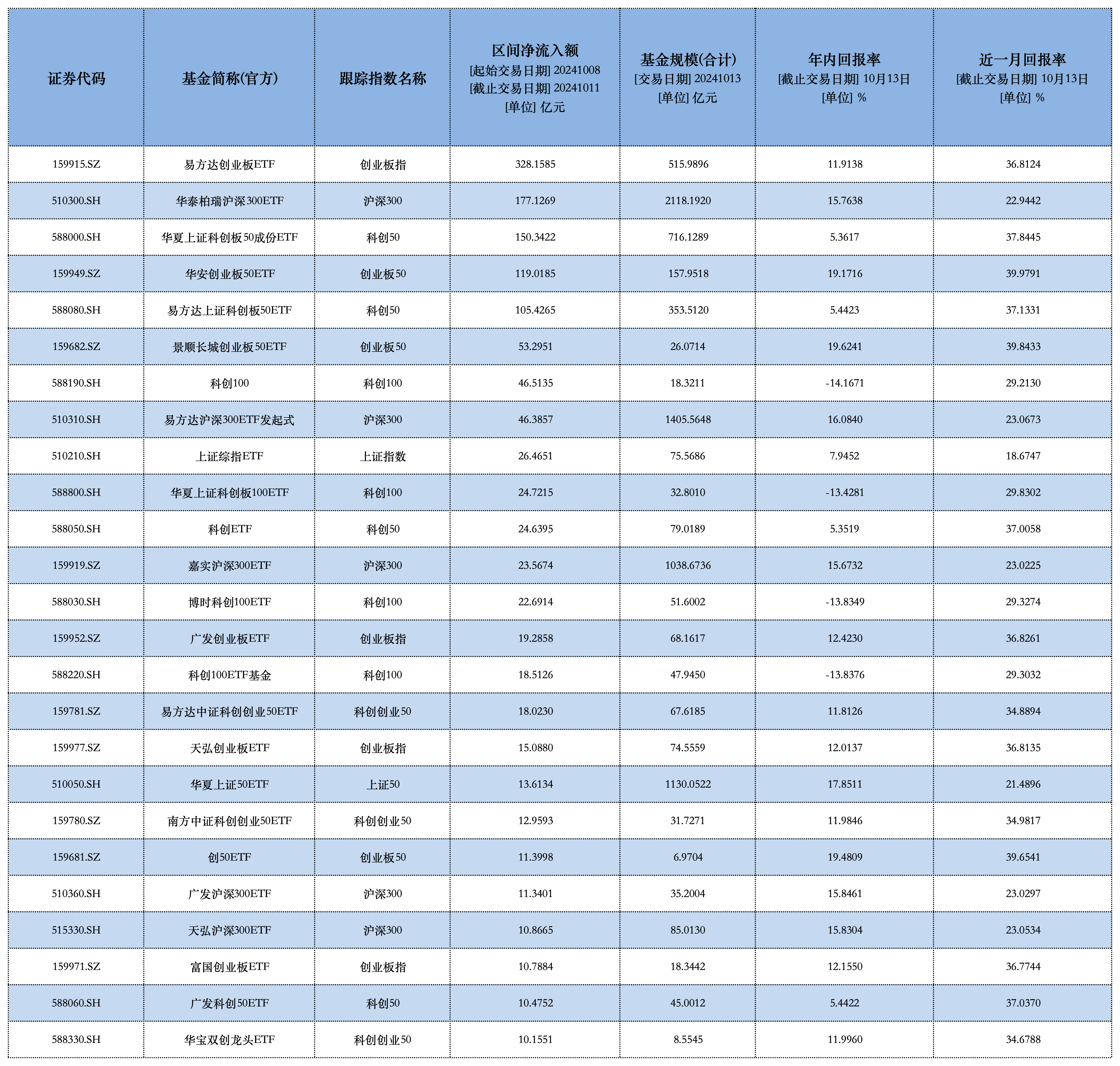 在節(jié)后的四個(gè)交易日里(10月8日至10月11日),寬基ETF規(guī)模顯著增長(zhǎng),期間凈流入量高達(dá)1422.78億元,推動(dòng)其整體資產(chǎn)凈值攀升4%,達(dá)到2.16萬(wàn)億元。