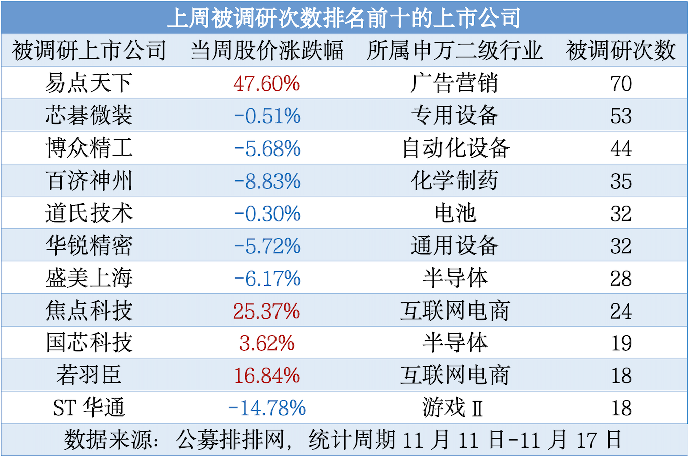 (上周被調(diào)研次數(shù)排名前十的上市公司)