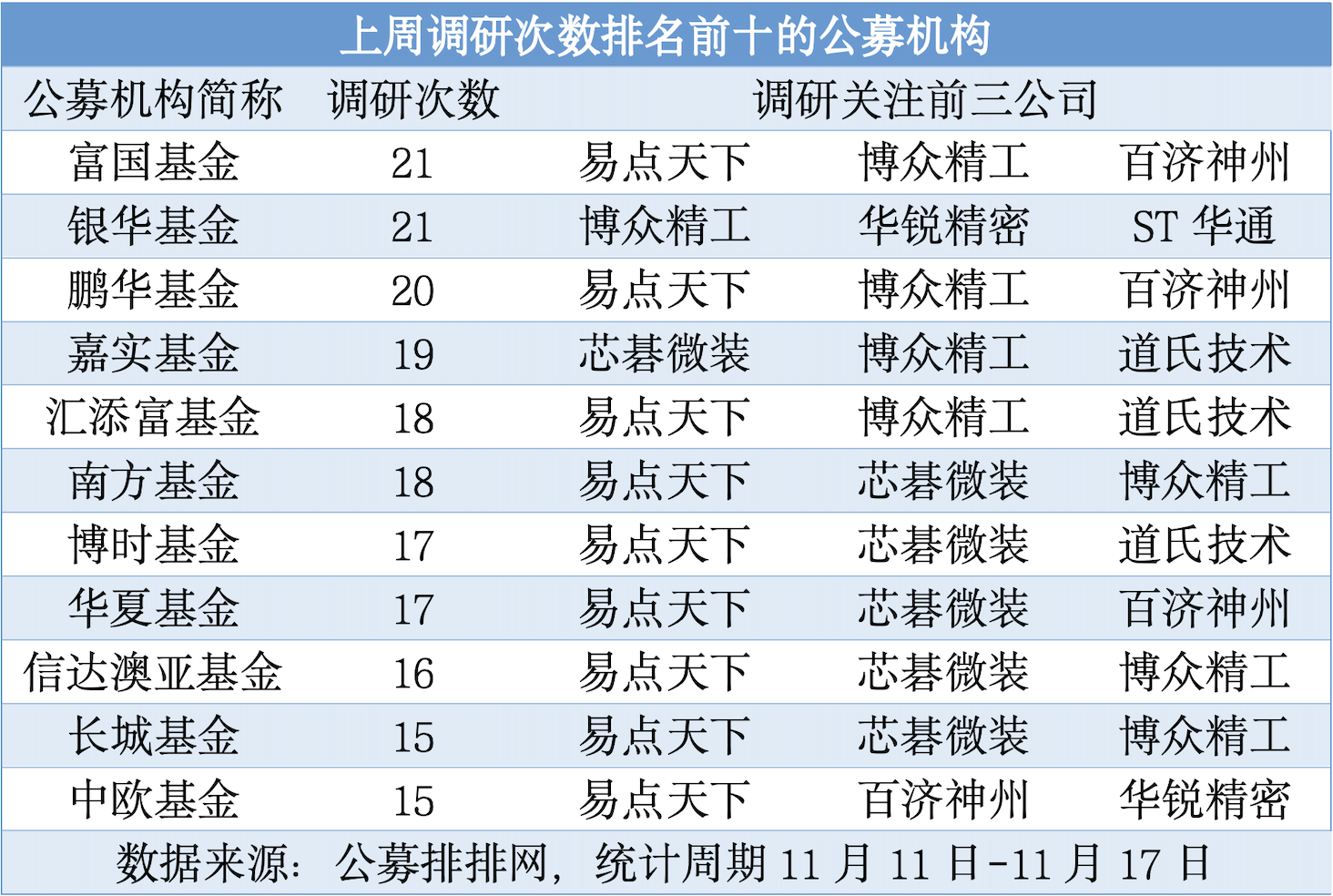 (上周調(diào)研次數(shù)排名前十的公募機構(gòu))